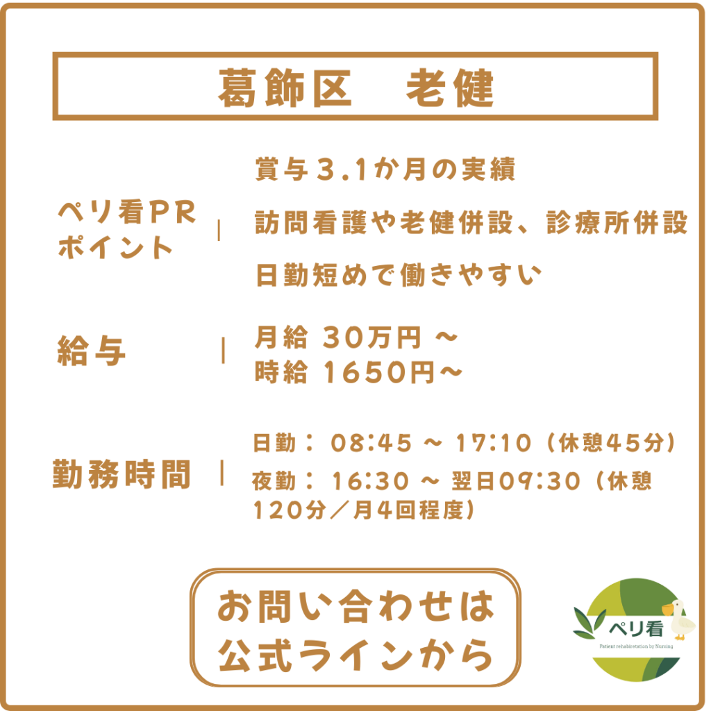「葛飾区 老健 求人 問い合わせ希望」と添えてご連絡ください👍